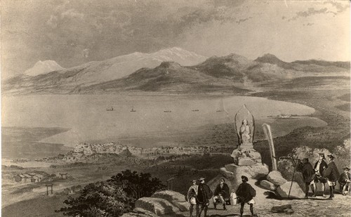 (ペリー航海記/ペリー艦隊付き絵師ハイネが函館山から描いた函館の港 *1)