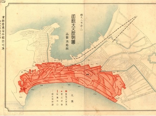 1907(明治40)年の大火は、約1000人の死傷者を出し、また町の中心部の大半を焼き尽くしました。しかし、経済的実力を蓄えてきた市民の力で、すみやかな復興が成し遂げられます。旧函館区公会堂、旧相馬邸、旧イギリス領事館、カトリック元町教会、ハリストス正教会など、函館に現存する歴史的建造物の大半は、この大火以降に建てられたものです。