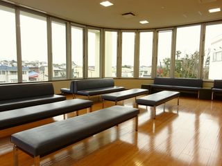 脱衣所・浴場は、男女とも階段を上がった2階にあります。館内はバリアフリーとなっていて、緩やかなスロープやエレベーターなどが設けられ、玄関から脱衣所、浴場内まで段差なく行けます。2階の中央部分には待合・休憩ホールがあり、風呂上がりの待ち合わせ場所として最適です。