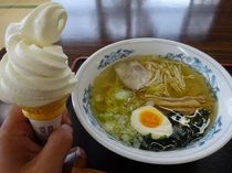 休憩所横には食堂が併設されています。山川牧場の牛乳ソフトクリームをはじめ、ちょっと小腹がすいたときにササッと食べたいラーメンやそばなどの麺類や、軽くつまめる料理が300円~600円台と、リーズナブルな価格で用意されています。