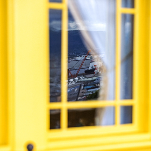 バルコニー側の開口部は、開け放した扉の向こうに見える函館湾が絵画のよう。