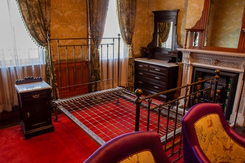 御座所の隣にある「御寝室」。洋風の家具やベッドなどは、東京の家具店を視察し、西洋文化を取り入れて、函館の家具職人たちに作らせたもの。今も各部屋に置かれています。