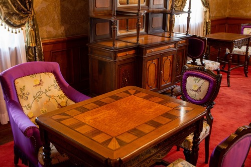 今回の建物の保存修理工事の際には、完成当時からある家具やカーテンの補修やクリーニングといった作業も実施。傷んだ椅子の生地の張り替えや、カーテンのタッセル(布の端に取りつけられる装飾)のつけかえが行われました。