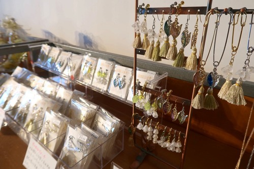 売店では、旧函館区公会堂の限定商品と北海道がイメージできる雑貨を販売しています。館内のカーテンの補修で取り外されたタッセル(房飾り)を再利用したブローチ、ピアス、イアリングや、公会堂をかたどったキャンドルなど、ここでしか入手できないレアなものがいろいろ。