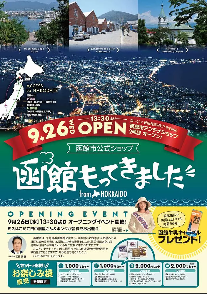 2018年9月26日、東京都内のローソン世田谷奥沢五丁目店内に、函館市のアンテナショップ「函館もってきました。2号店」がオープンしました。