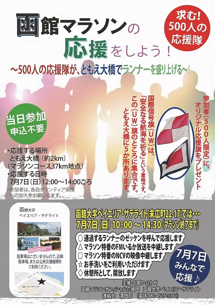 問い合わせ 函館マラソンオフィシャル応援団080-4505-3360(澤田石)