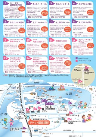 チケット制で、氷上アクティビティや大沼公園周辺のレストランがお得に利用できます。チケットは期間中いつでも利用OK。家族や仲間で分けても使えます。利用日当日に購入できるので、気軽に楽しめます。