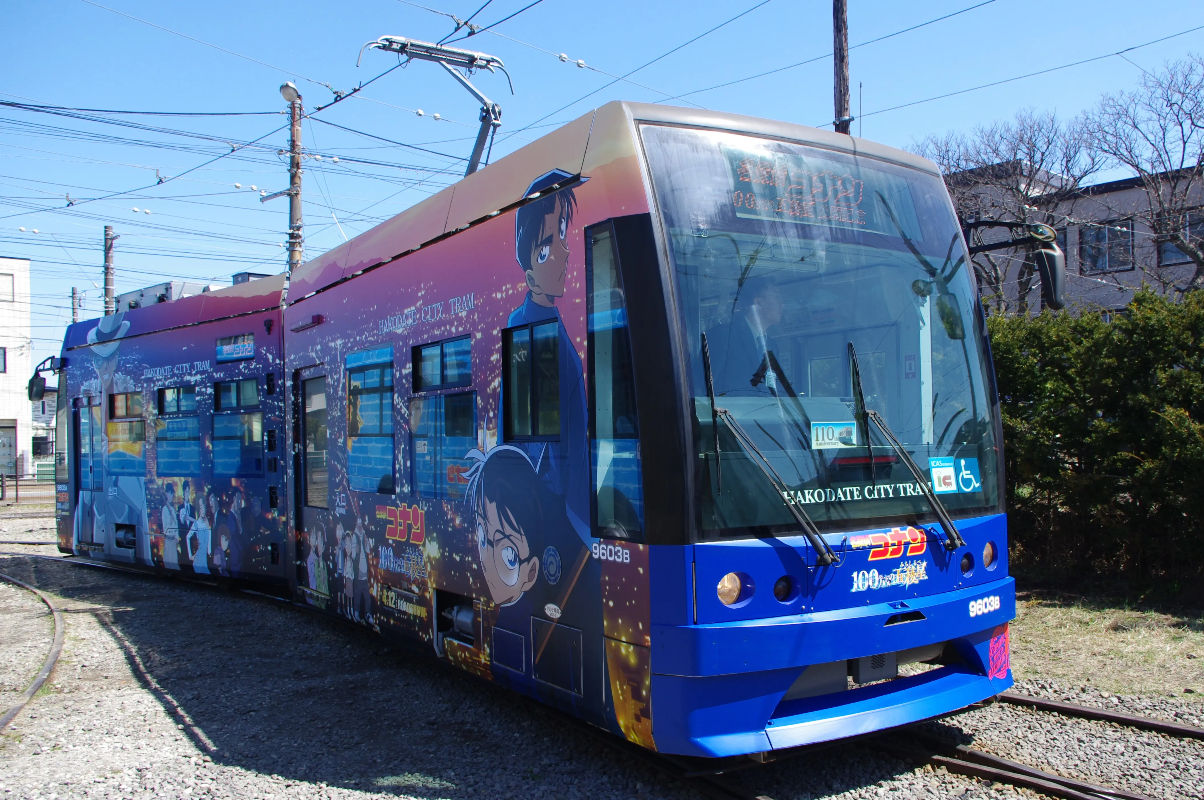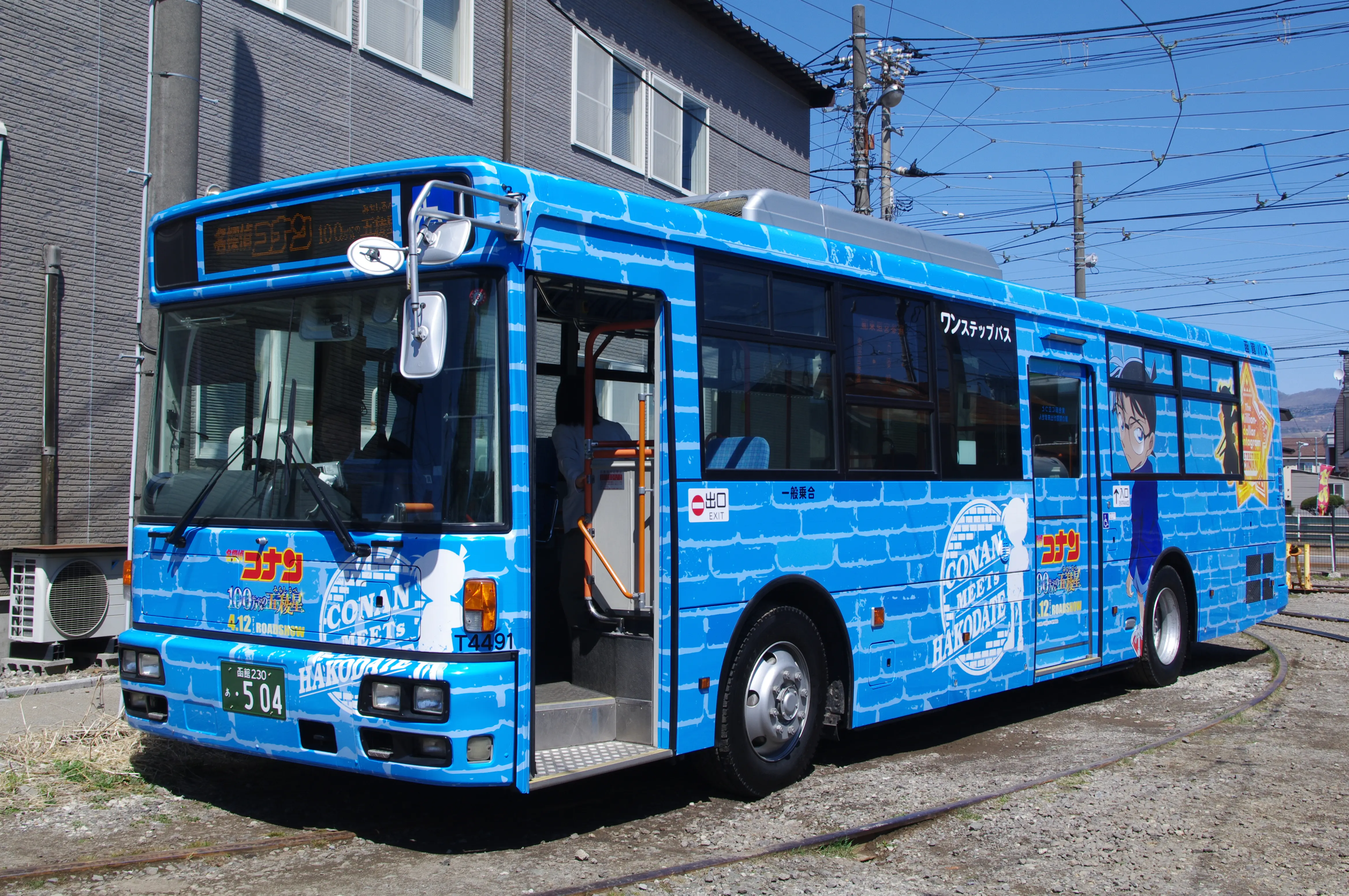 劇場版「名探偵コナン 100 万ドルの五稜星(みちしるべ)」オリジナルラッピングを施したバス3台が函館市内路線を運行。一部停留所のアナウンスが主人公:江戸川コナン君(CV:高山みなみさん)の声に変わります。