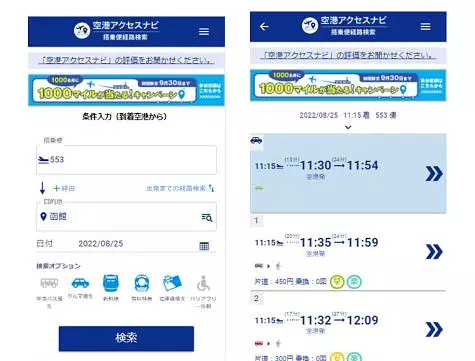 ANAの「空港アクセスナビ」は、航空券の予約便に合わせて目的地までの経路検索ができる、心強い旅の友。