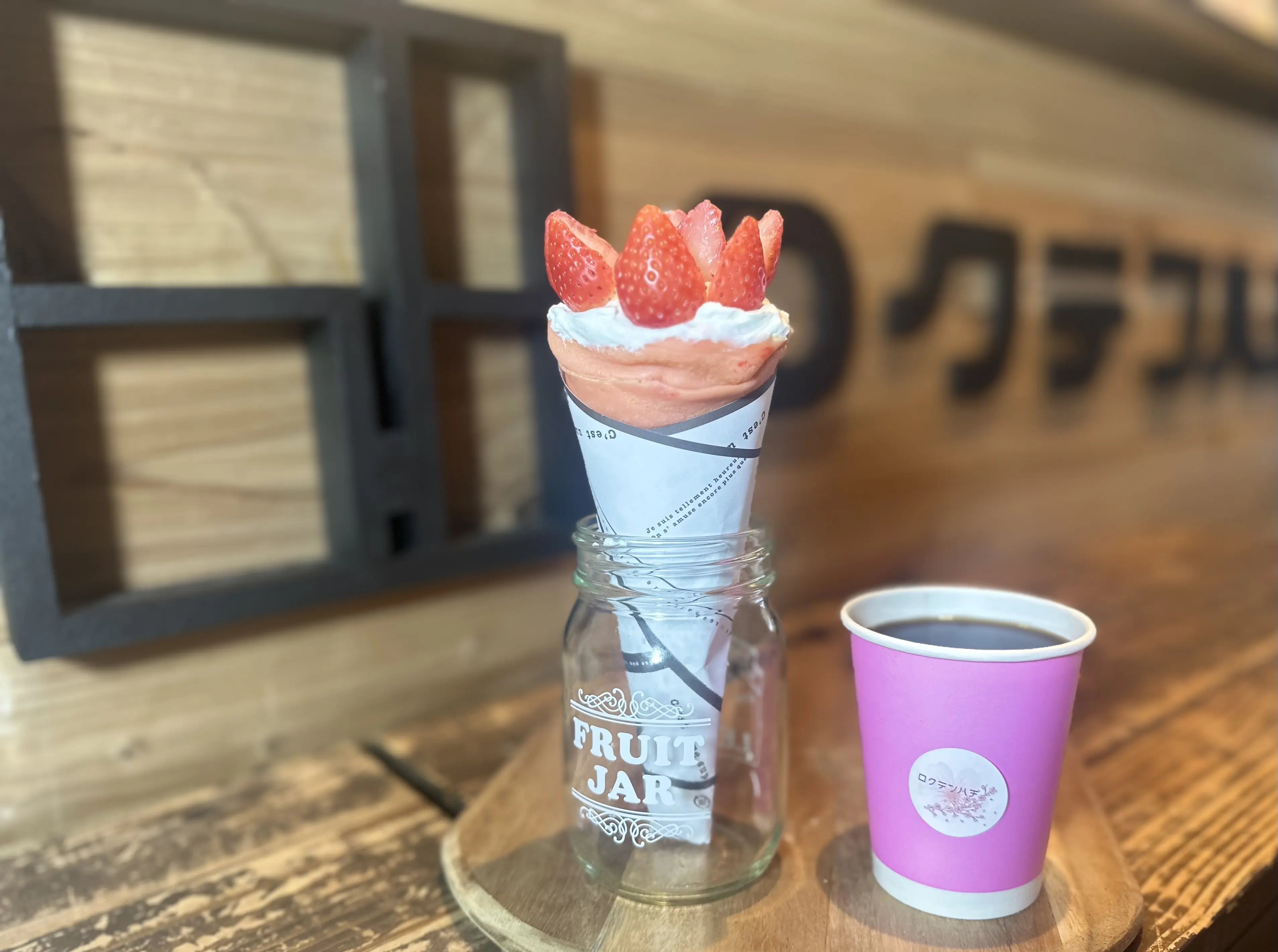 ・函館牛乳とイチゴペーストを加えた桜色の生地の苺クレープ