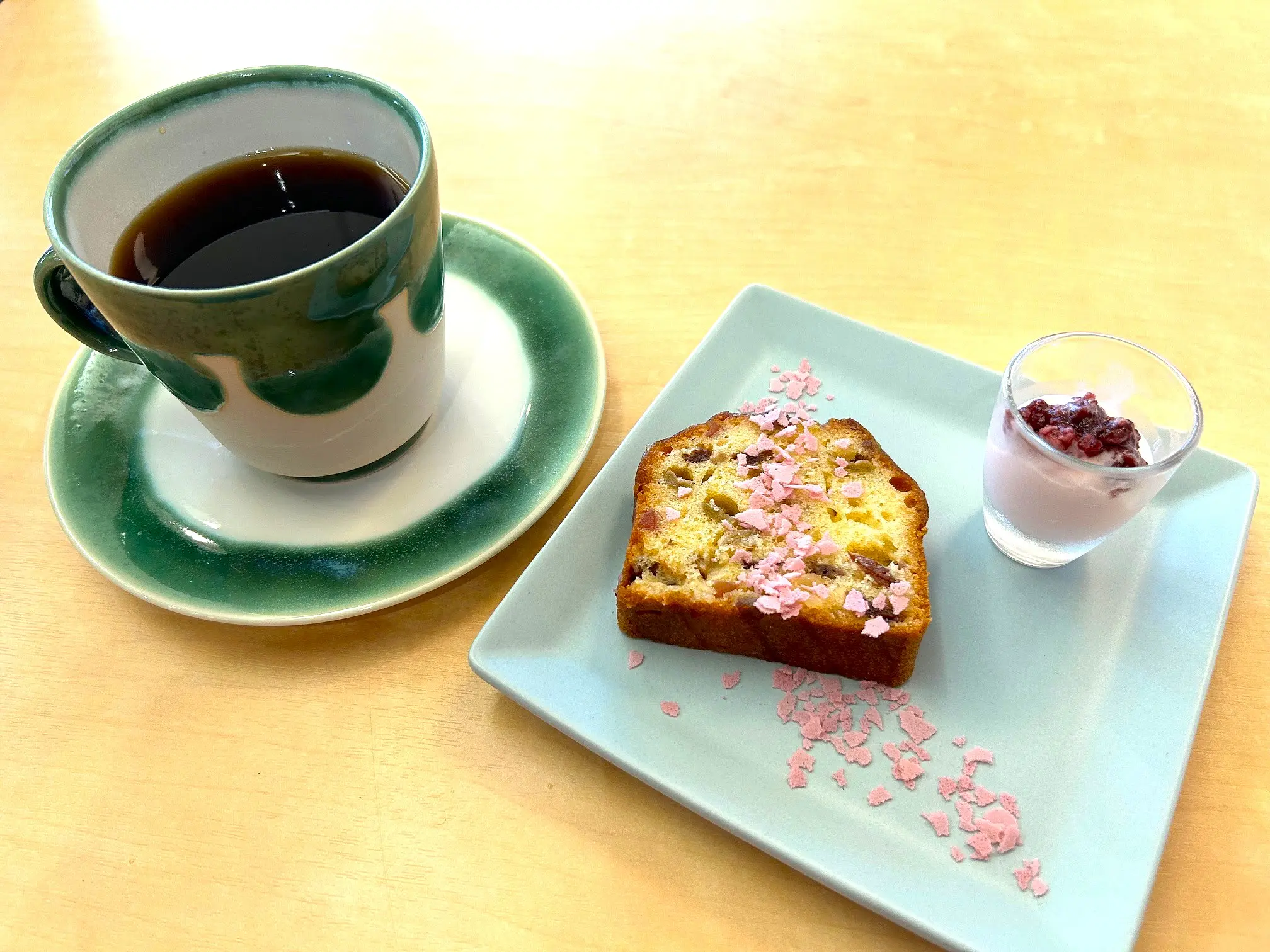 ・桜ミルクと甘味セット(桜焼き印入りのどらやき・串だんご・上生菓子「花らんまん」)
