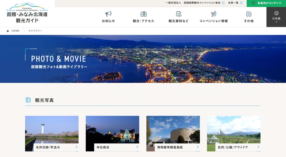 函館観光のプロモーションの目的で、函館/みなみ北海道の観光地や観光施設の高解像度画像を配布。イメージカテゴリで選べます。