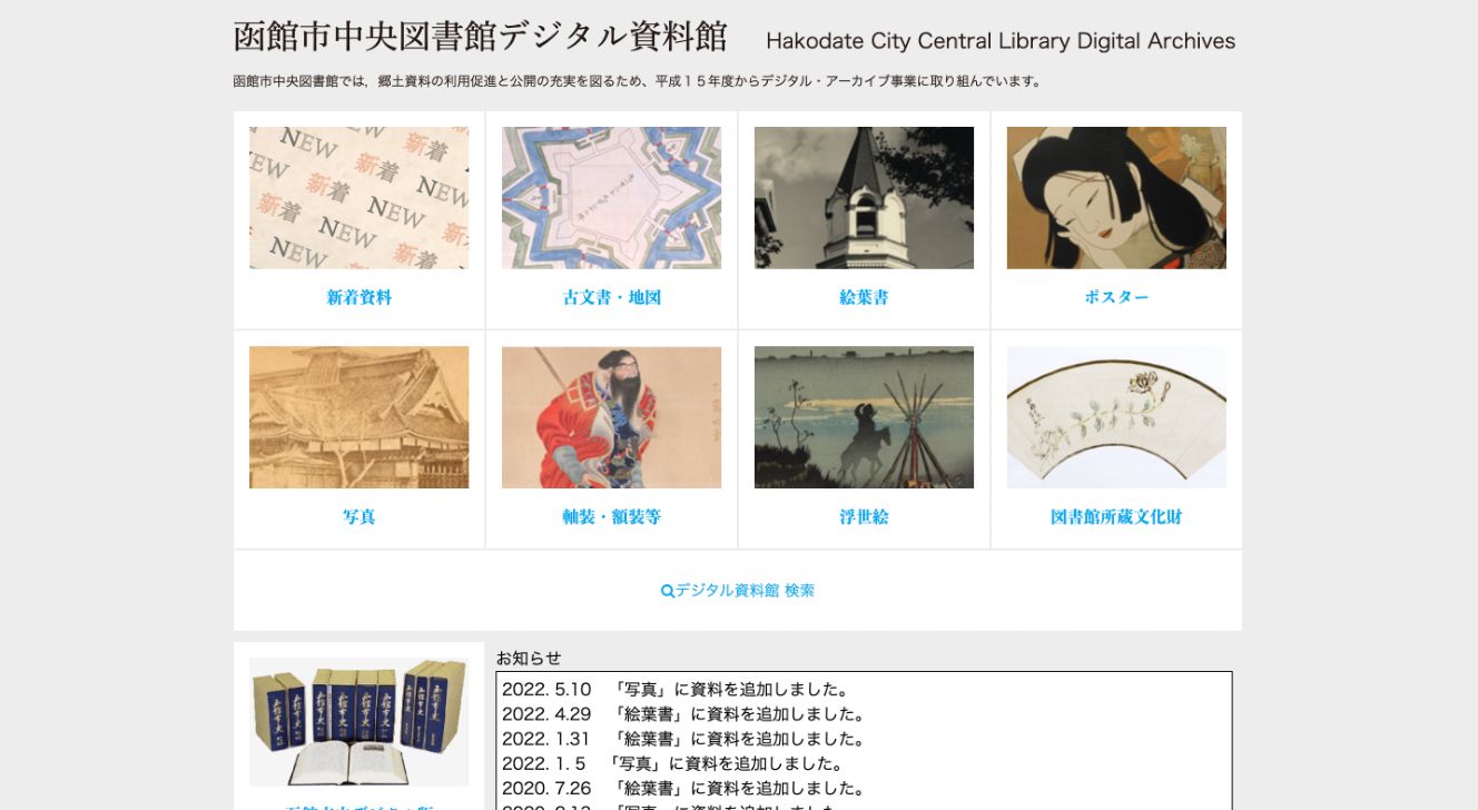 貴重な古写真などの利用と資料保護の目的で構築されたデジタルアーカイブ。ジャンルごとにフリーワード検索ができます。