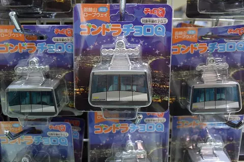 子どもから大人までファンの多いタカラトミーの「チョロQ」シリーズに、函館山ロープウェイのゴンドラが登場! いわゆる「ご当地チョロQ」で、愛らしくも精巧なデザイン、手のひらに収まりそうなサイズ、価格の手ごろさで、大変人気がある商品です。函館山展望台売店のみの限定販売。