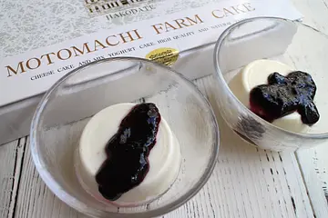 プルプルとした食感、なめらかな口あたりに仕上げたレアチーズタイプのチーズケーキですので、食べる前に冷やしておくと、素材のおいしさがより引き立ちます。おすすめの食べかたは、酸味のあるフルーツソースをかけるスタイルで、なかでもブルーベリーソースとの相性は抜群。函館市旧イギリス領事館ティールーム「ヴィクトリアンローズ」でも、こちらのチーズケーキにブルーベリーソースをかけてシャンパングラスで提供しており、上品な味わいが評判を呼んでいます。