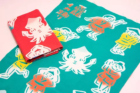 函館を代表する踊り「いか踊り」をモチーフにした手ぬぐい。職人が昔ながらの手法で染めている。帰省したお客様から懐かしいとの声も。外国人観光客にも人気。