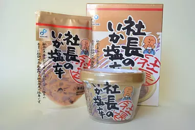 函館近海で獲れた鮮度のいいイカを使用し、創業以来使い続けている木樽にこだわって塩辛を熟成させている。木樽仕込み独特の旨みと風味が特徴。