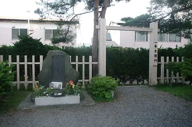 箱館戦争の末期、土方歳三が銃弾に倒れたとされる一本木関門跡に近い若松緑地公園に建つ。全国の土方ファンの手向ける花が絶えない。