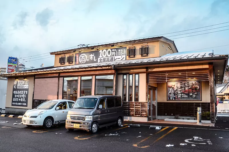 大型ショッピングセンター敷地内にある回転寿司。一皿76円~528円で気軽に入れる。タッチパネルで注文した寿司を新幹線が運んでくるなど、子ども連れにおすすめ。