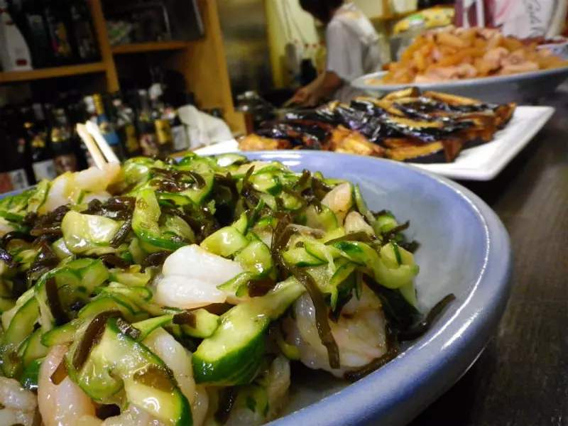 家庭料理がカウンターにずらりと並ぶ、おばんざい料理屋。好きなおかずをチョイスできるのがうれしい。市電大町電停から徒歩1分。箱館丸がある西埠頭にも近い。