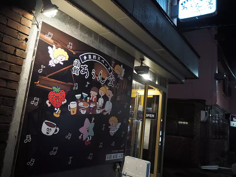 函館駅から徒歩4分、観光客に人気の屋台村・大門横丁にほど近い大門仲通り沿いの老舗多目的スペース。ライブやイベントなどがない日は、バー&カフェとして営業しています。1960年から2軒のジャズ喫茶時代を経て、1983年にオープン。ギャラリーや演劇、音楽ライブ、映画上映など多用途で使われていますが、特に90年代のバンドブームの時には、地元の若者たちが集う場所として有名になりました。函館出身のGLAYやYUKI(元JUDY AND MARY)がアマチュア時代に出演を重ねたことから、ファンの間では一度は訪れたい聖地になっています。
