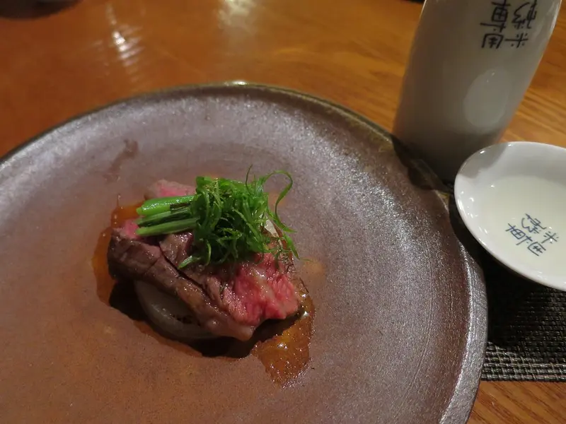 5500円のコースは、旬の食材の持ち味をシンプルに生かした、目にも美しい料理が次々に運ばれてきます。内容はその日によって異なりますが、前菜、煮物椀、旬のお造り、魚料理、肉料理、ご飯と汁の全6品。たとえば、「南茅部産活ボタンエビの天ぷら」は、火を通すことで素材のもつ甘みが一層引き立ち、カリカリに揚がった香ばしい殻にもコクがあります。天つゆにつける、または好みによってミネラル分豊富なベトナム産の塩で味わううのも美味。また、「南茅部産サクラマスの幽庵焼」は、柑橘類をアクセントに加えた醤油味のつけだれで、サクラマスの身の軟らかさを損なわないよう丁寧に焼き上げたもの。上品な口当たりがたまりません。