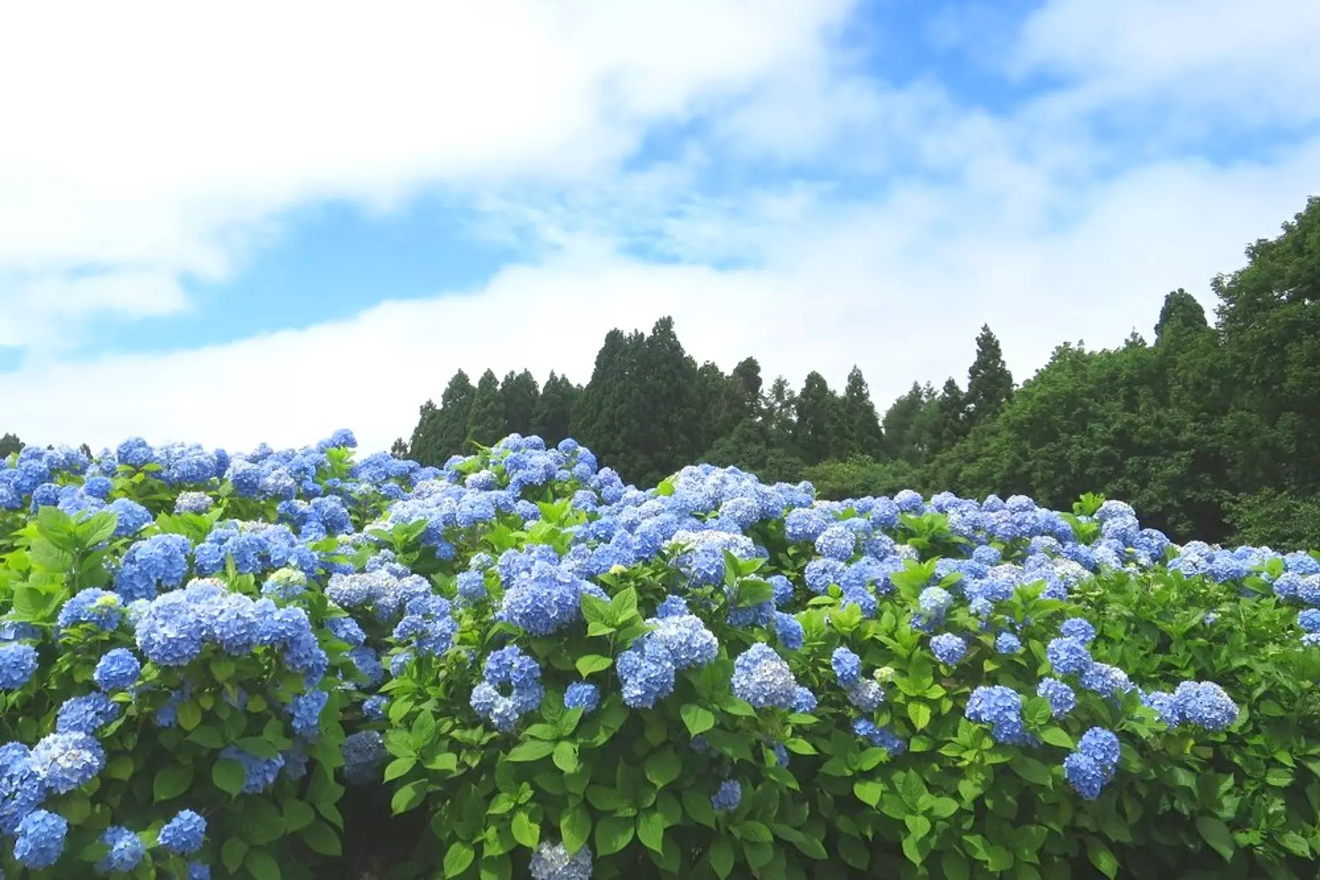 「アジサイ園」では、6月下旬から9月中旬まで、さまざまな種類のアジサイが咲くのも見どころ。約1万3千株が植栽されていて、早咲きから遅咲きまで楽しめます。