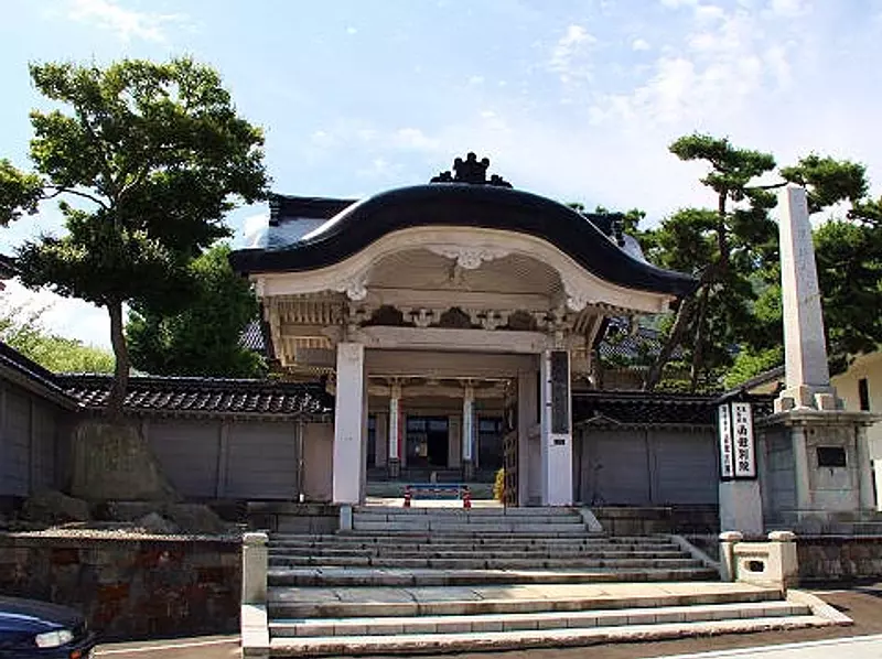 明治40年の大火で類焼、1915(大正4)年建替えに際して日本初の鉄筋コンクリート造りとした。ニ十間坂沿いに威風堂々と建つ。国指定重要文化財。東本願寺函館別院とも呼ばれる。