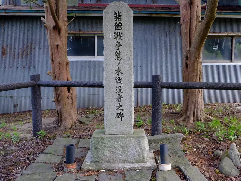 開戦とともに、このあたりは榎本軍の後方陣地となりました。史跡公園内には、旧幕軍の上陸記念碑や慰霊碑があります。
