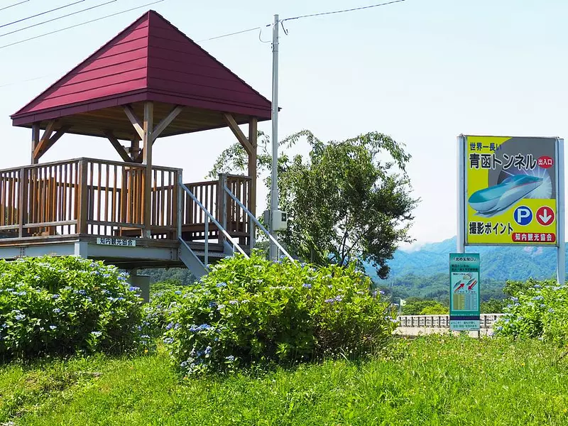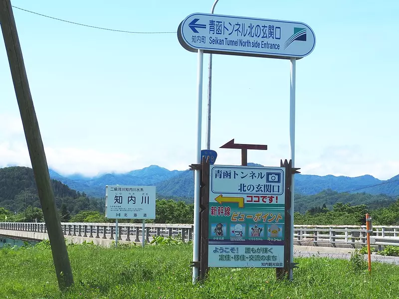 道の駅「しりうち」近くにある青函トンネル出入口。トンネルに新幹線が出入りする様子を見ることができる。観光協会が設置した写真撮影台は写真・鉄道マニアにおすすめ。