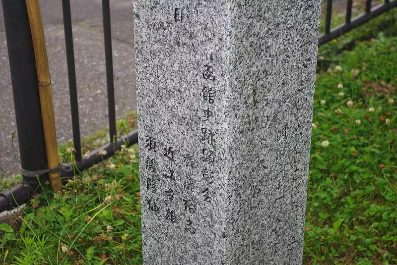この石碑は2010(平成22)年に函館歴史顕彰会が建立したもの。市電「函館どつく前」電停近くの入舟児童公園内にありますが、実際の弁天台場の位置は電車通りをはさんで反対側、現在の函館どつくの位置にありました。そちらには現在、弁天台場跡の標柱があります。台場自体は、1896(明治29)年の港湾改良工事の際に石垣が取り壊されたうえで周囲を埋め立てられ、現在は函館どつくの建物などが建ち並んでいます。