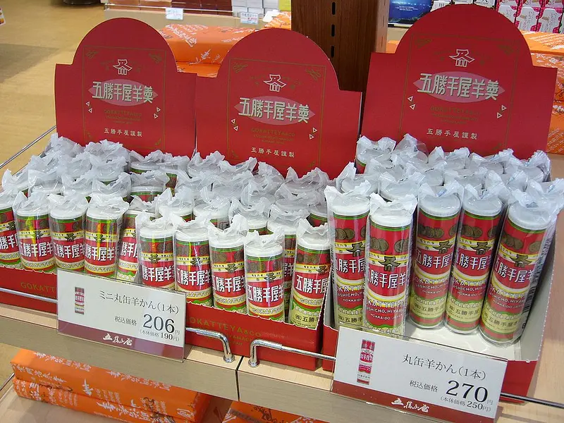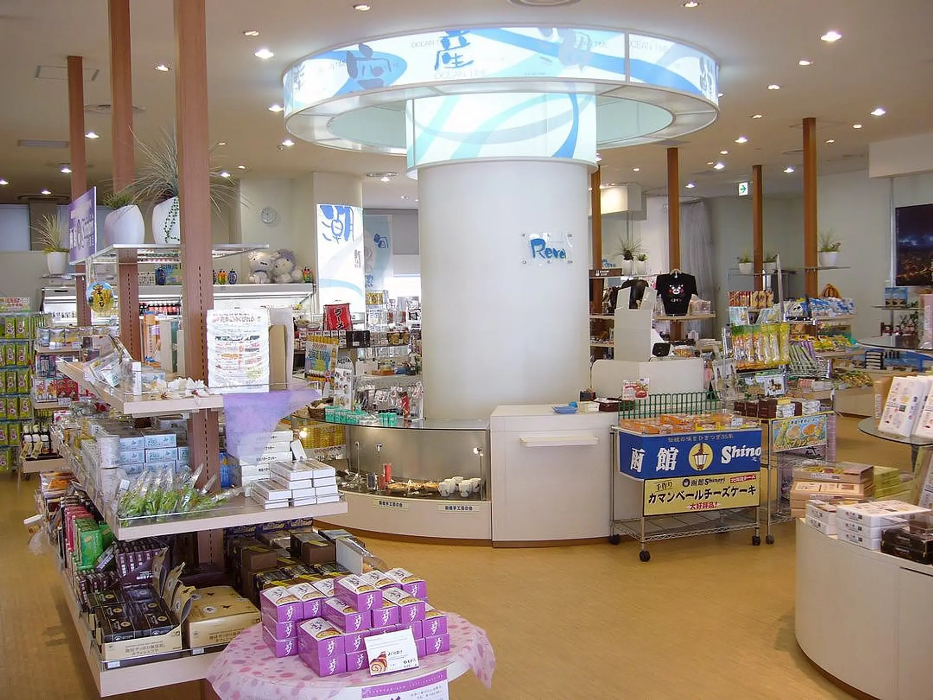 「GIFT SHOP Rera」は、石屋製菓の白い恋人、六花亭のマルセイバターサンド、ロイズのチョコレート、カルビーのじゃがポックルといった定番の北海道みやげをはじめ、地元函館の人気商品や、南部せんべい、アップルチップスなど青森の商品など、みやげ菓子が充実。お店のおすすめは、熟練の技と伝統の味が人気の江差の老舗和菓子店、五勝手屋本舗の「丸缶羊かん(324円)」。