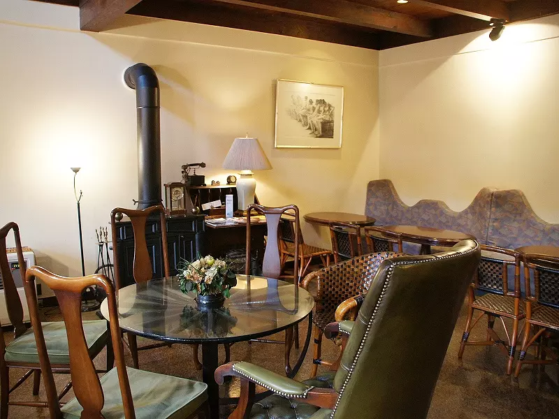 一歩足を踏み入れると、香ばしい珈琲の香りに体が包まれます。建物の柱や建具が重厚で艶めかしく、現代の扉を閉め、大正モダンの世界観にとっぷりと浸かることができます。天井は高く吹き抜け。1階はモダンな机や椅子、暖炉がもうけられた和洋風、2階は小上がりで和風となっています。観光客の来店はもちろん、地元の女性客やスーツ姿の男性も多いのだとか。