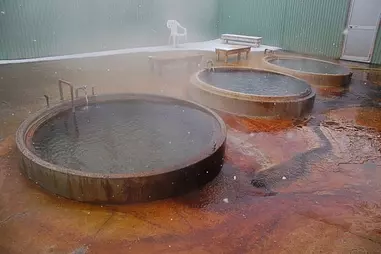 函館山の麓にある温泉施設。浴場内は天井が高く開放感があり、地元市民でいつも賑わっている。特別史跡五稜郭跡をかたどった星形の浴槽も。市電の谷地頭電停近く。