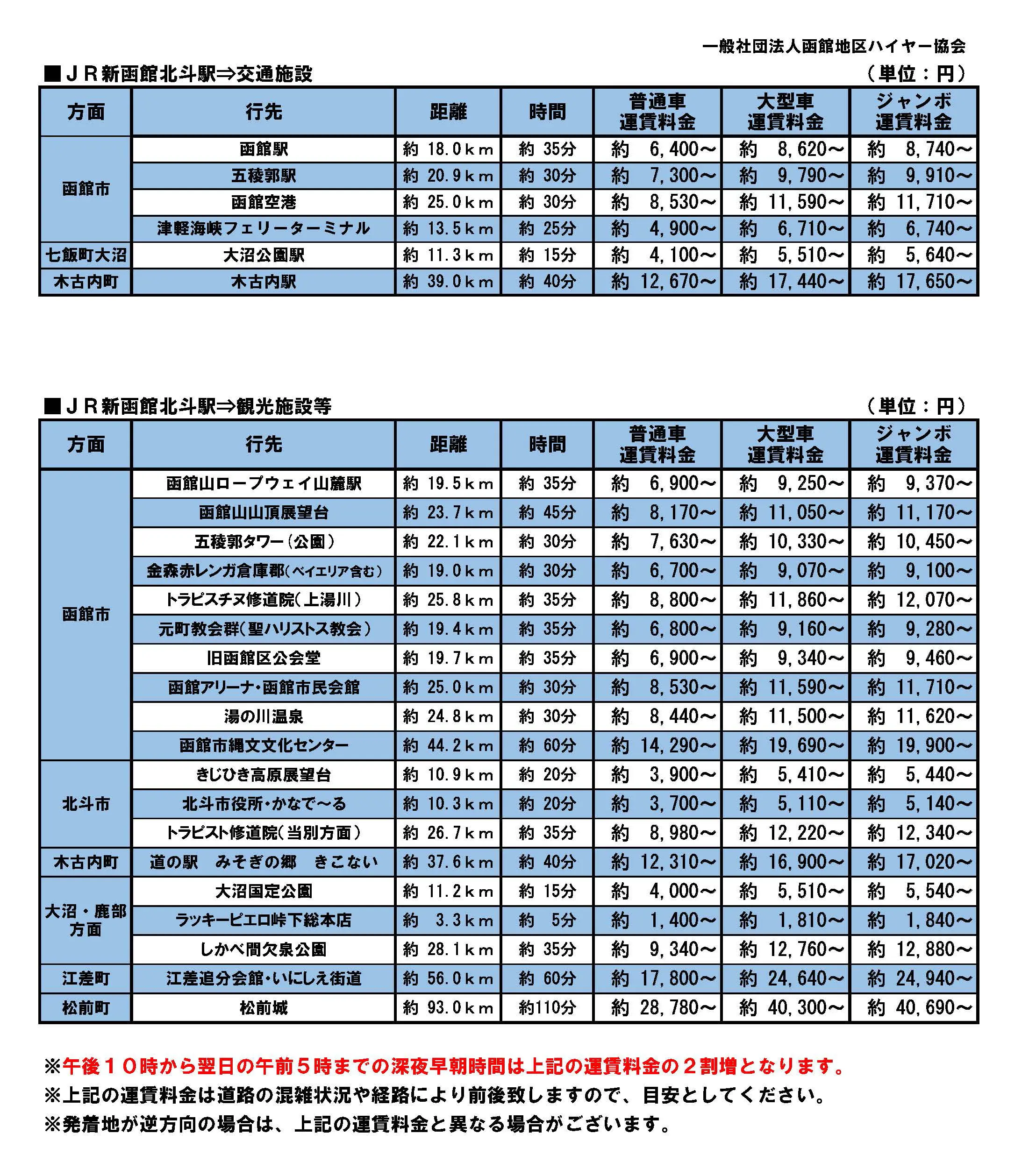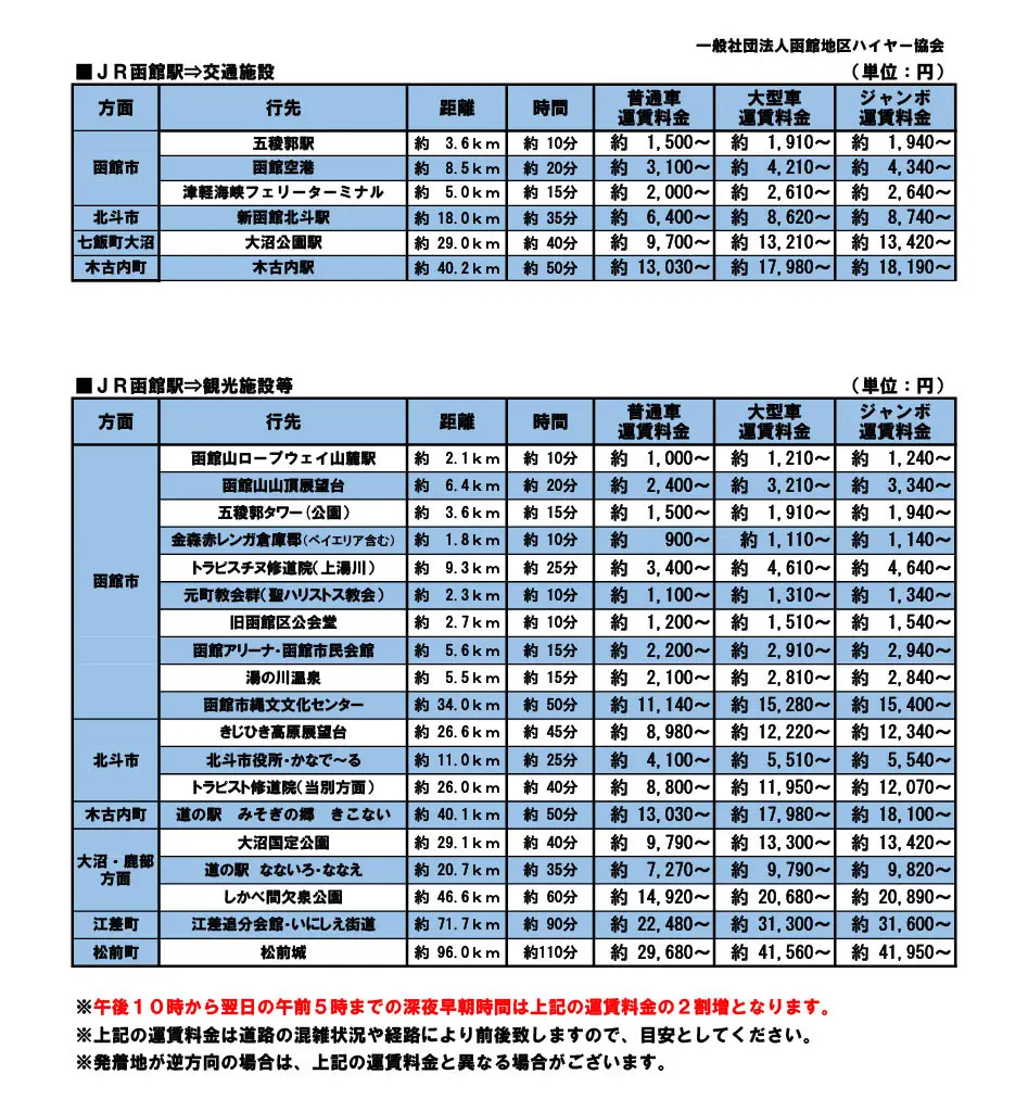 タクシー利用に関する問い合わせをよくいただきます。そこで、函館のタクシー料金の運賃料金の目安と所要時間を、「JR函館駅から」「函館空港から」「新幹線の新函館北斗駅から」に分けてご紹介します。